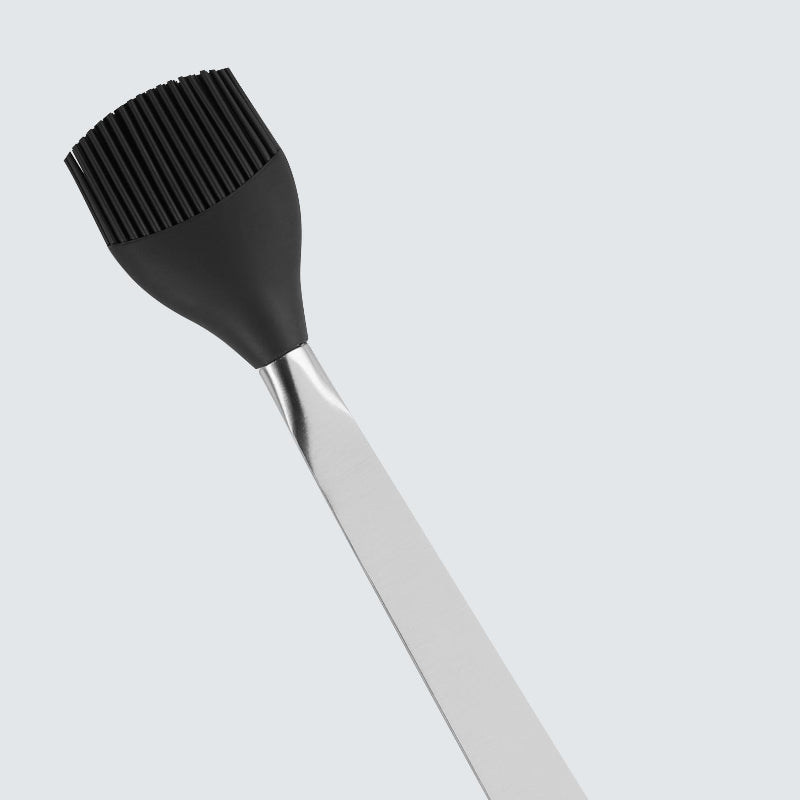 Yes. Stainless steel handles high oven temperatures without issue — far higher than domestic ovens reach. This makes the brush equally useful for basting roasts, glazing hams, or applying butter to bread during baking. The same control and precision that works outdoors applies in the oven. For stovetop basting (like basting a steak in butter in a cast iron pan), the long handle is actually an advantage — you can tilt the pan and spoon-baste without your arm being directly over the heat.
